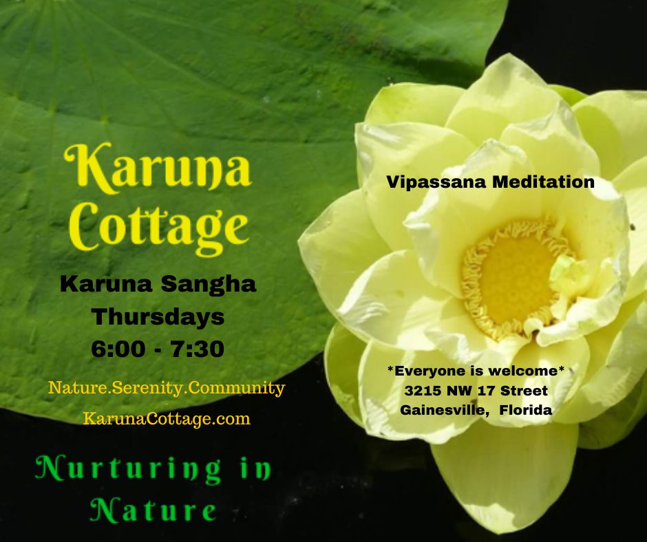 Allteachings are free. Dana or donations gladly received for both Karuna Cottage and the teacher and to support Bhava Nirodha Nilaya in Ft. White, Fl